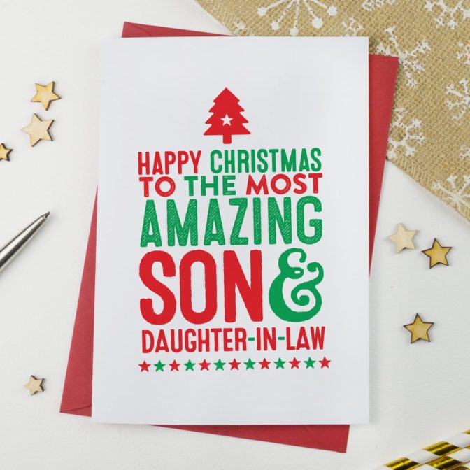 A stylish and contemporary Christmas card that tells your Son and Daughter in Law just how much she means to you at Christmas.