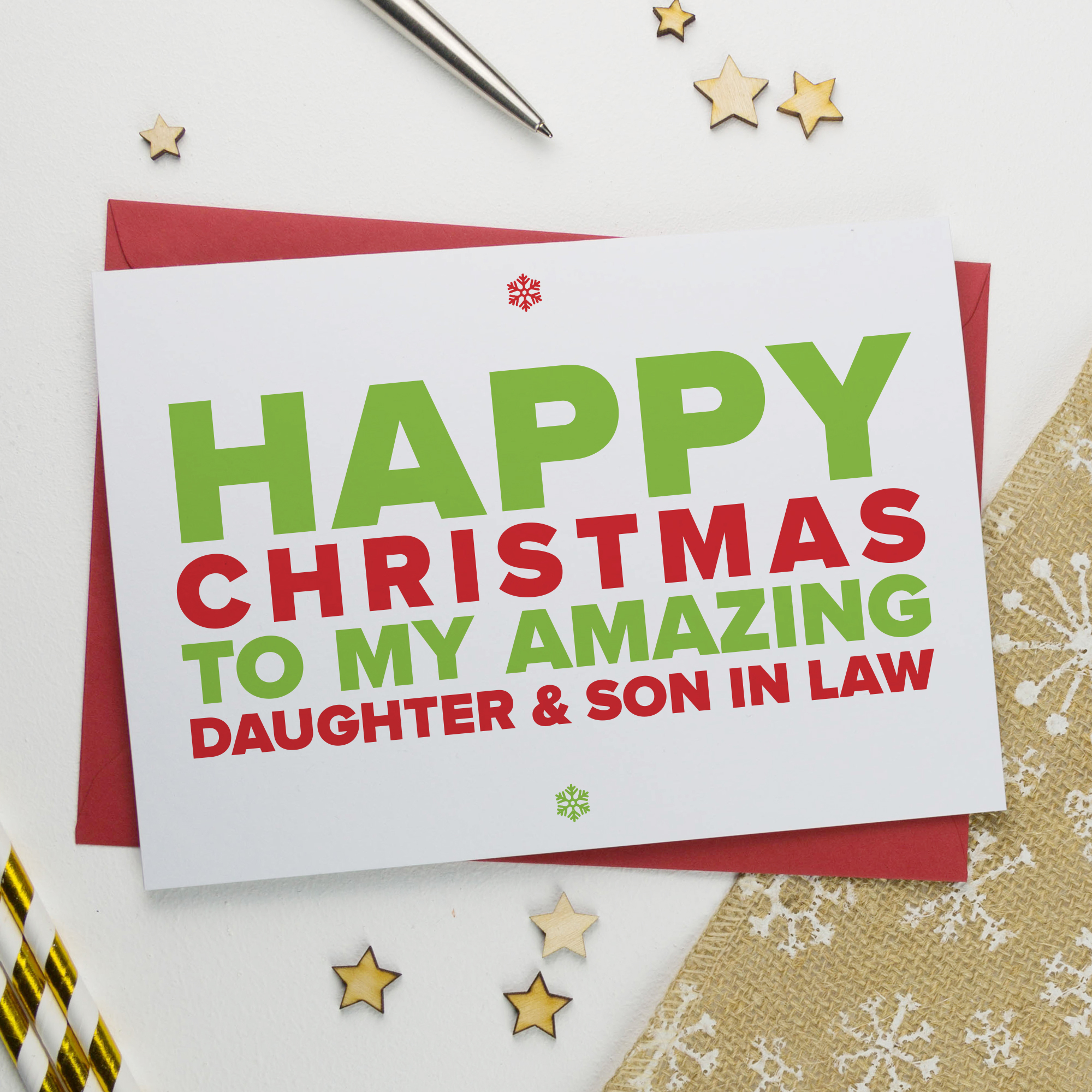 With this bright, fun and festive card, you can tell your Daughter and Son in Law how amazing they are and how much they means to you this Christmas.