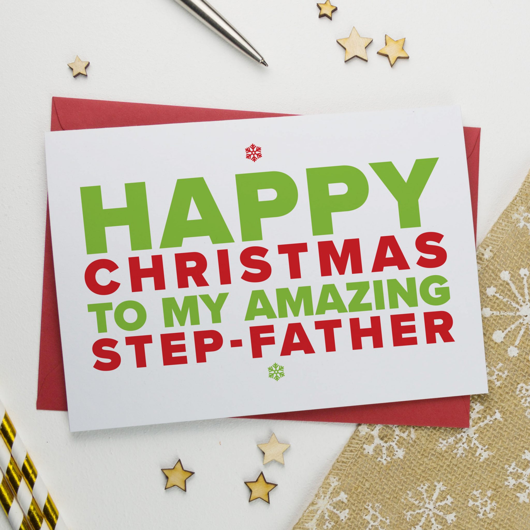A playful and festive Christmas card to send to your amazing Step Dad this Christmas! It’s the perfect card for Christmas!