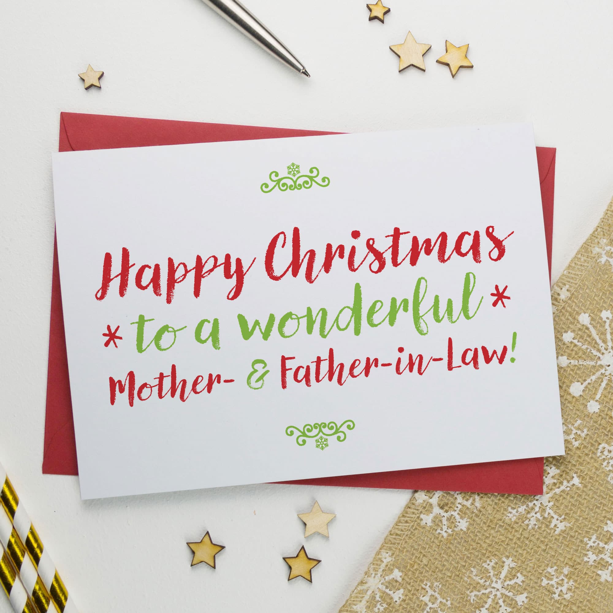 A cheerful and fun Christmas card that tells your Mother and Father in Law just how wonderful they are and how much they means to you!