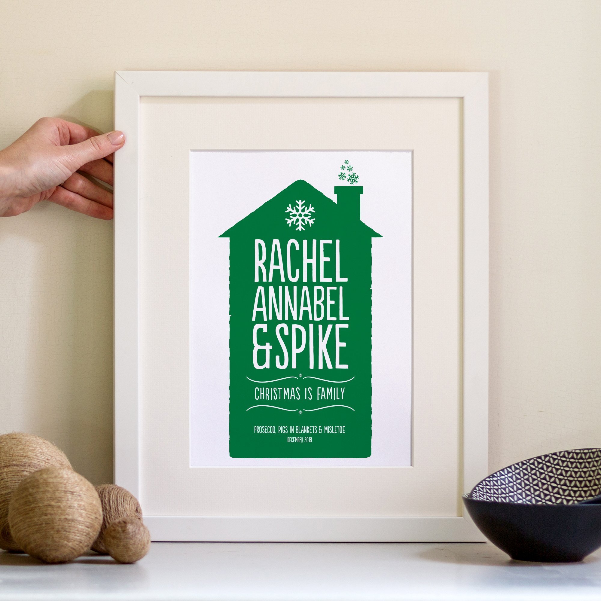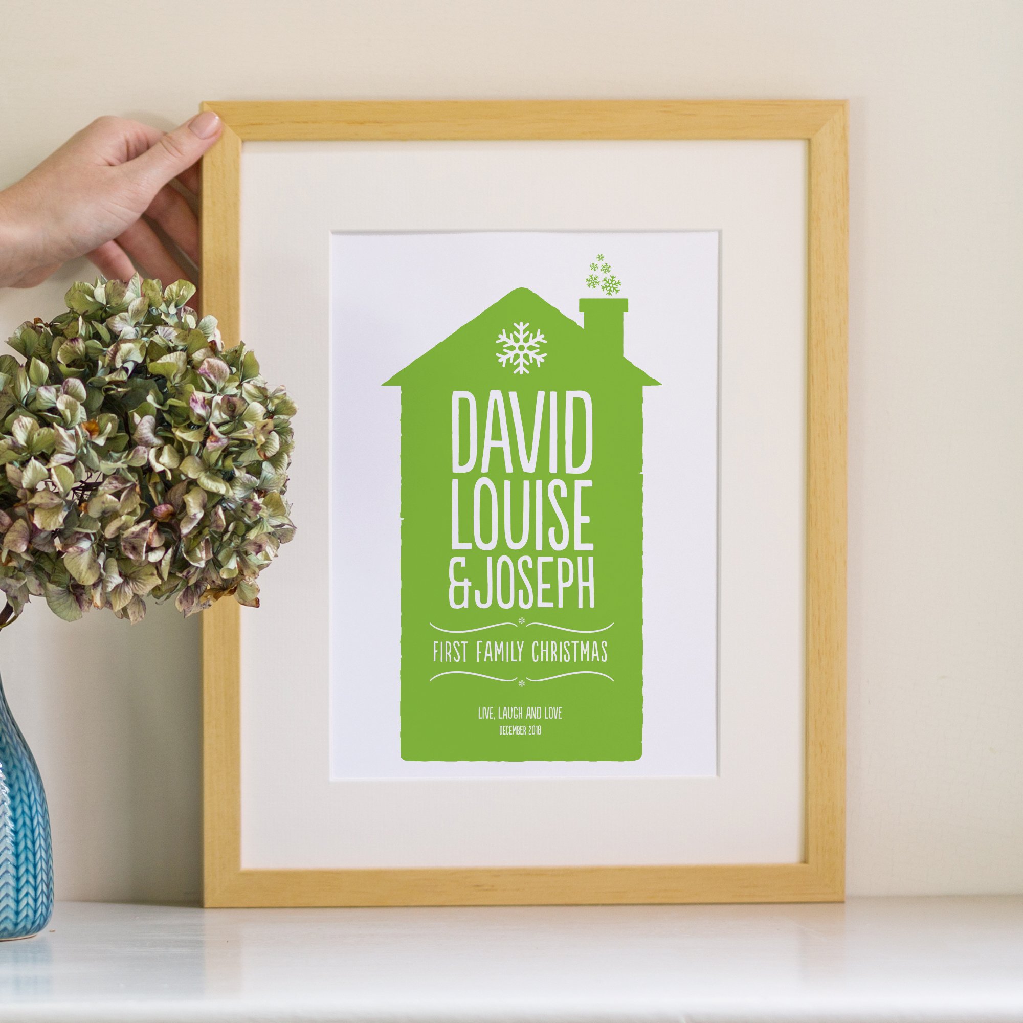This charming house print is perfect for new parents or new homeowners at Christmas. Highly personalised with names, two lines of text and a range of colours, this print is the perfect gift to give or to buy for yourself and your family.