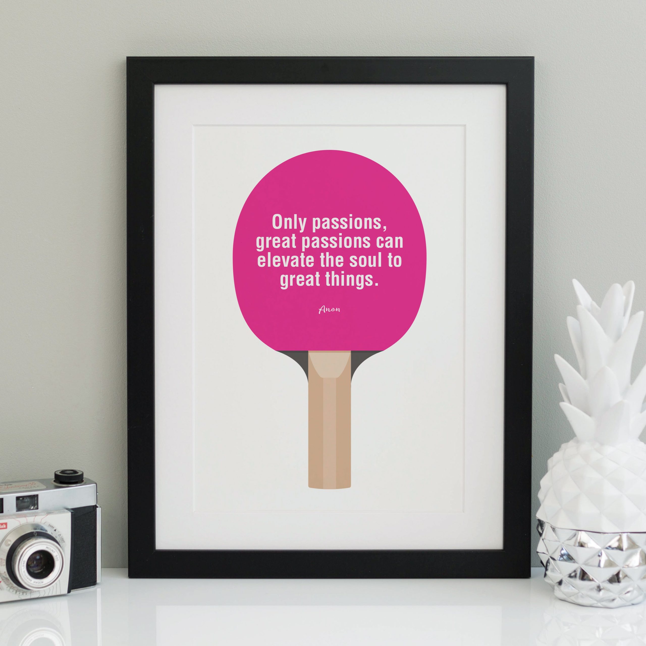 This bold graphic print is perfect for a table tennis player, fan or fanatic! Personalise with your own text and choice of colours.